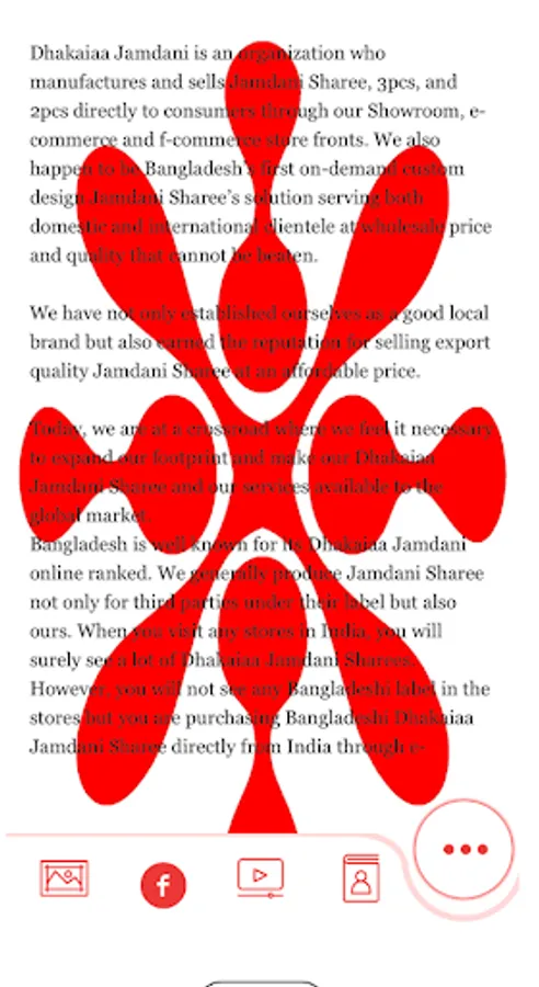 hakaiaa Jamdani is making Jamdani Sharee, 3pcs, 2pcs, Tangail shari and selling directly to consumers through Showroom, e-commerce and f-commerce store fronts. We are serving both domestic and international client at wholesale price with good quality.