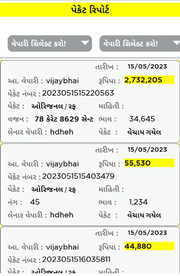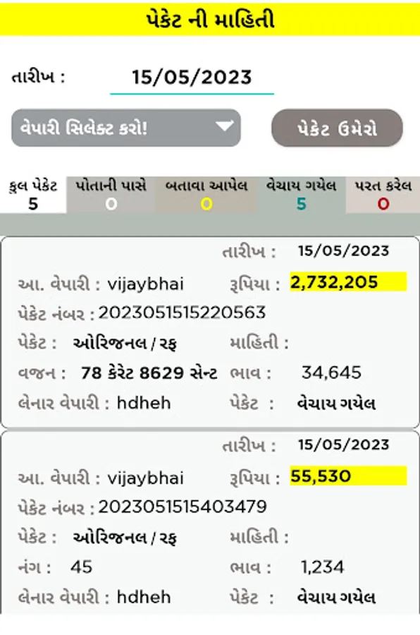 User can see all details about packets at single screen like packets total no, no of packets on user hand, no of packets give for see and no of sell packets and return packets.