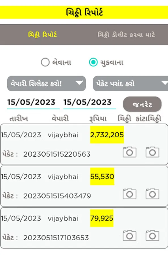 User can also capture and store payment slip (Chitthi) and weight and CVD checker slip (Katta Chitthi).