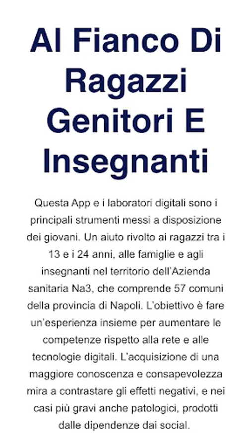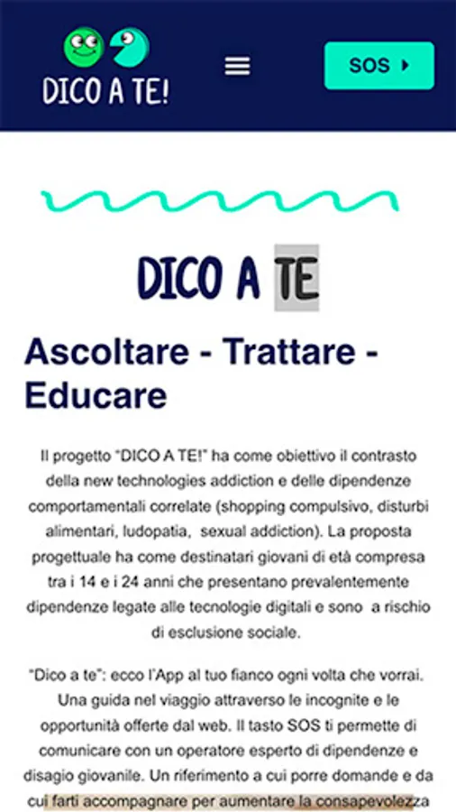 The project "TELL YOU!" aims to contrast new technologies addiction and related behavioral addictions (compulsive shopping, eating disorders, ludopathy, sexual addiction). The project proposal is aimed at young people aged between 14 and 24 who mainly have addictions related to digital technologies and are at risk of social exclusion.