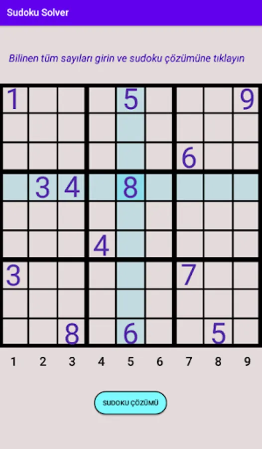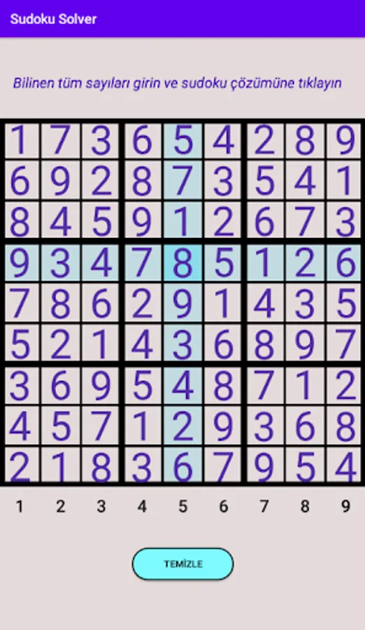 When you enter all the known numbers through the numbers on the screen, it will present the puzzle to you in a solved form.