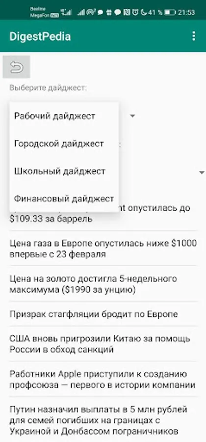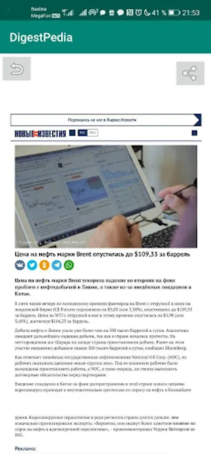 The application allows you to view the pages added to the digests, save them in pdf format, view without the Internet.