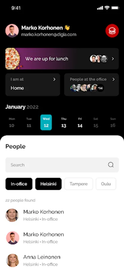 Indicate in the application if you are looking for a lunch companion, so you don't have to eat alone.
