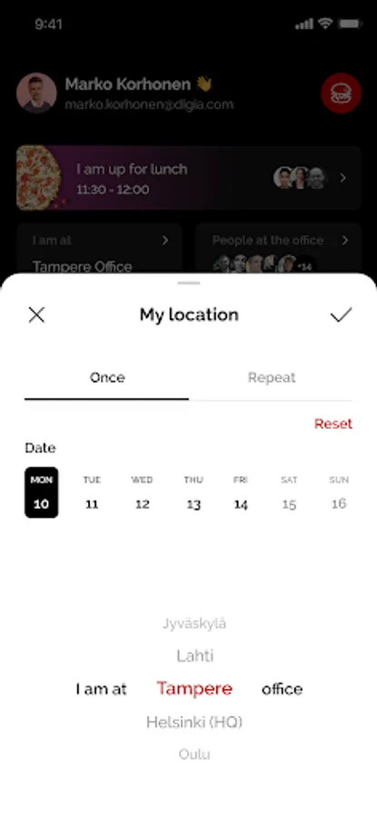 Tell in the application when you are in the office. This is how coworkers know how to join you.