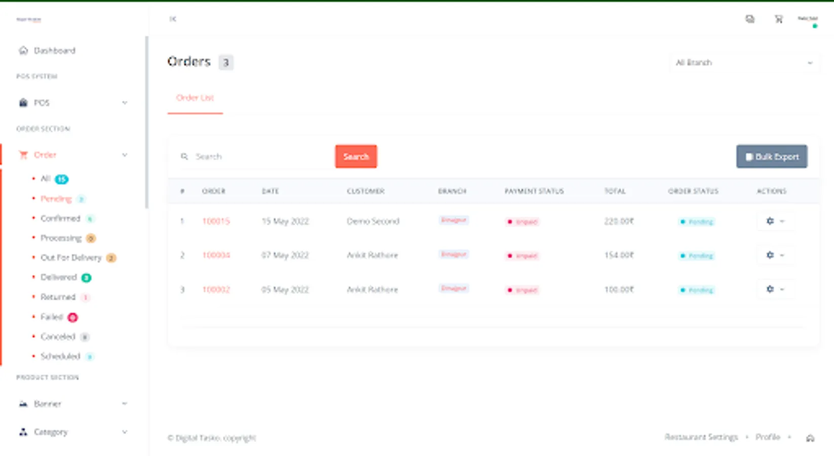 Super System by Digital Tasko is a Multi Branch supported food delivery restaurant management system with POS that comes with the user app, website and delivery man app.