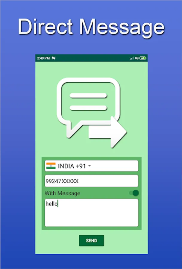 Direct Message is a tool to send messages to any numbers without saving them in your WhatsApp Contacts.
