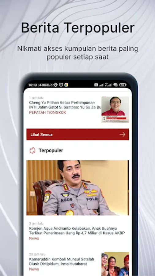 Fast and accurate news presentations that can be accessed 24 hours are presented, including News containing legal, political, defense and security events that occur throughout Indonesia and internationally, business news, sports, and entertainment.