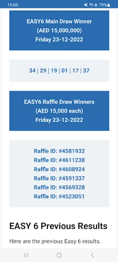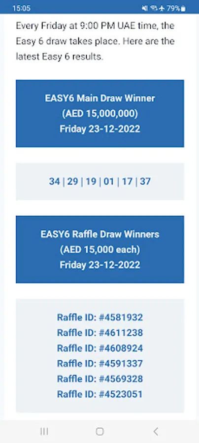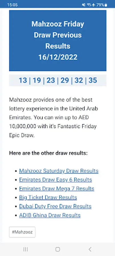 Get the latest UAE Draw Results within seconds of the draws and lotteries taking place with this simple, easy-to-use app shows the most recent draw winning numbers, prize breakdown information, previous results, and tips and tricks on winning for the following UAE Draw Results:
