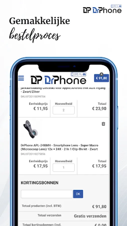 Met de DrPhone® app heb je altijd de beste assortiment binnen handbereik en kun je snel vinden wat je zoekt. Bestel binnen enkele minuten je favoriete product en krijg antwoord op al je vragen. Met de DrPhone® App regel je alles in een handomdraai.