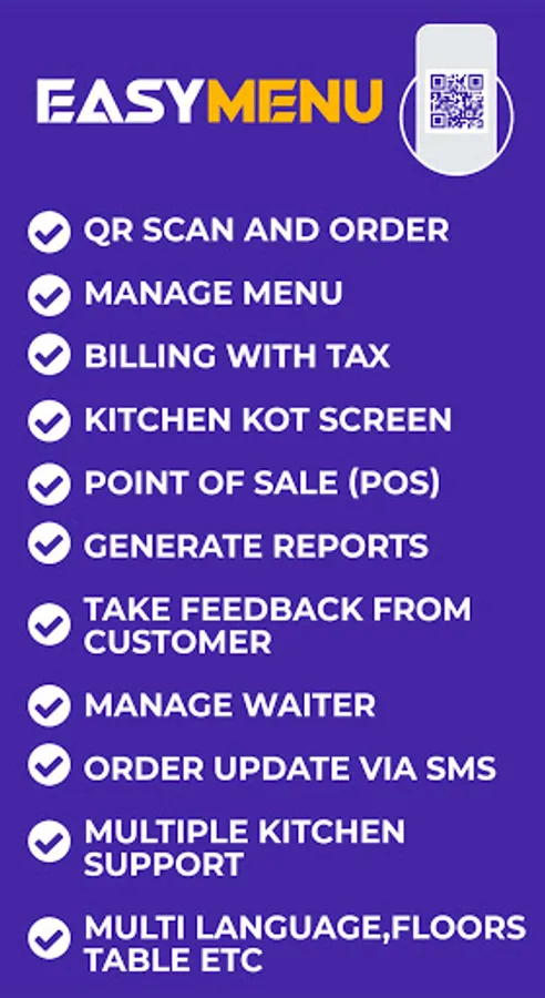 Easymenu Qr - SaaS solution for making digital contactless menus for your restaurant or shop, with complete management tools – POS, billing, reporting and much more.