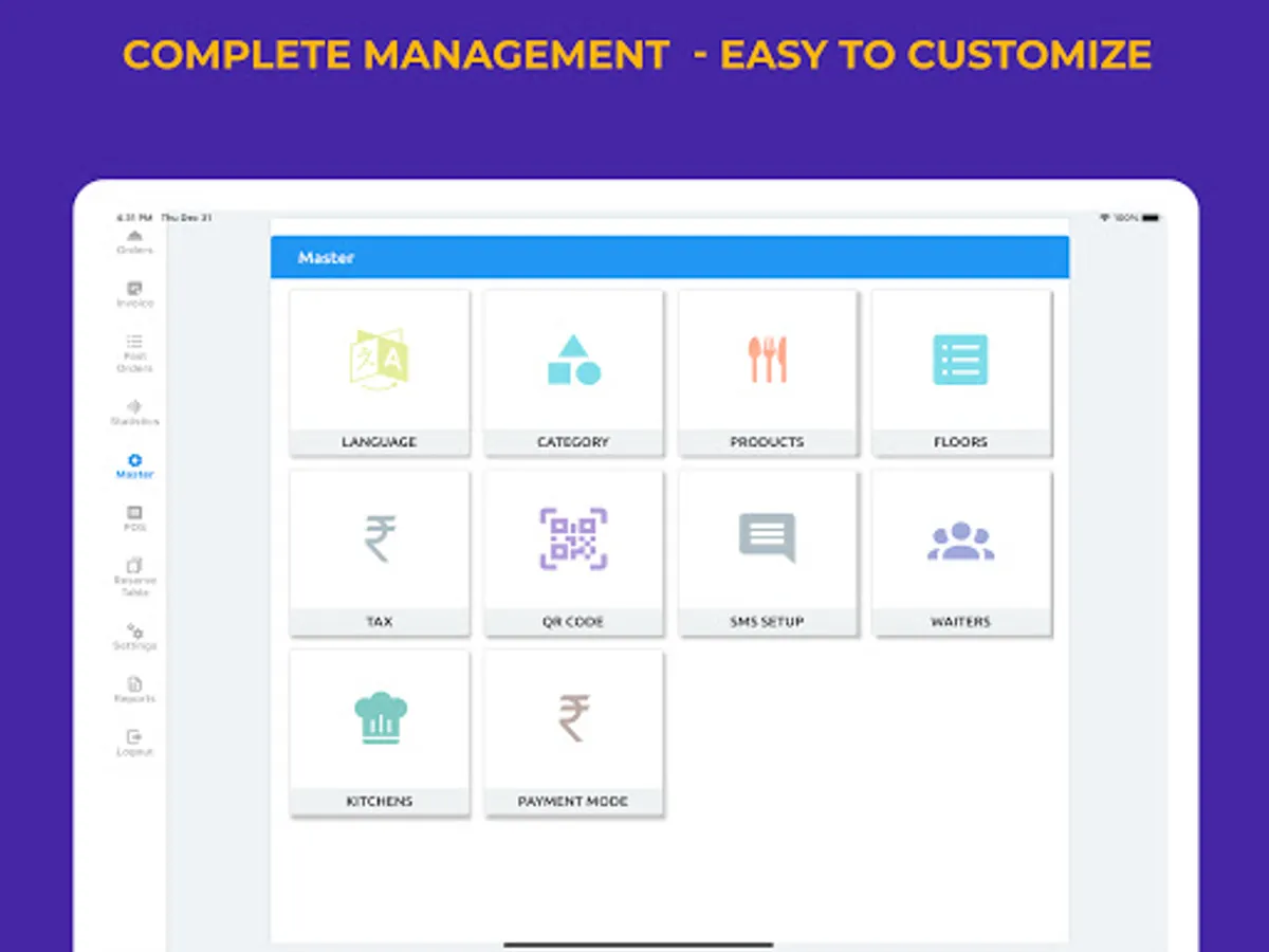 Advanced POS tool to create order from any device (mobile, tablet or desktop). No prior technical knowledge required. Manage your bills, tables, history, kitchen etc.