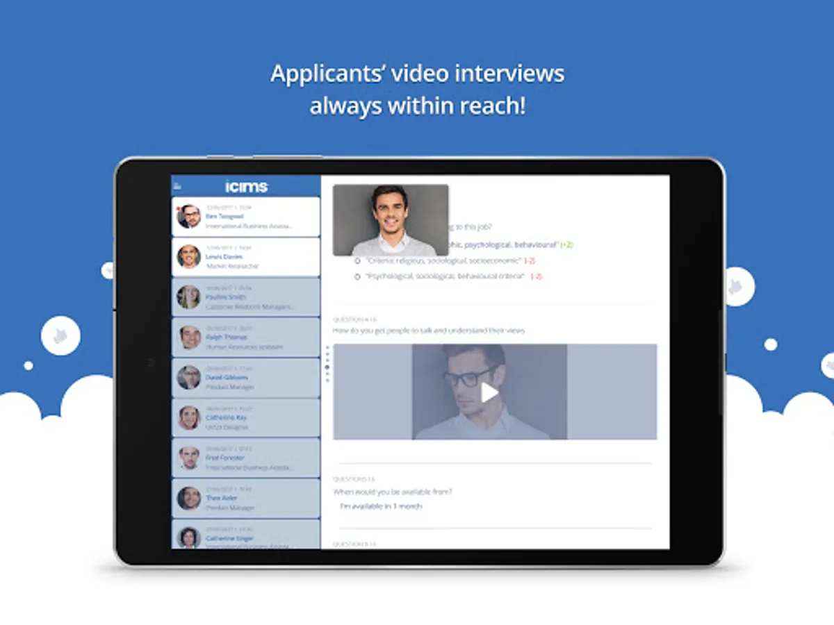 easyRECrue Recruiter allows you to check your applicants’ video interviews wherever and whenever you want. Download the easyRECrue Recruiter app now and log in with your usual user name and password.