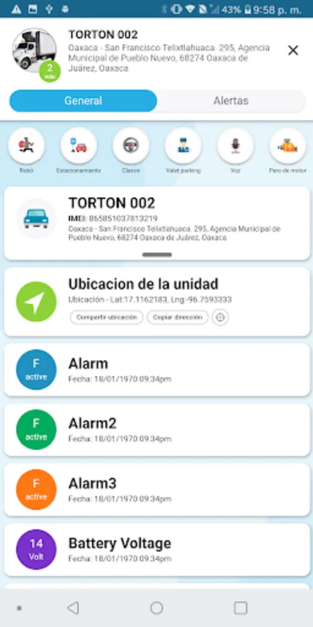 The application allows you to visualize your units, geofences and alerts, share the location of your units and send commands from the palm of your hand at all times.