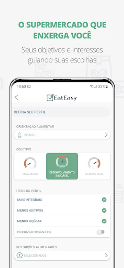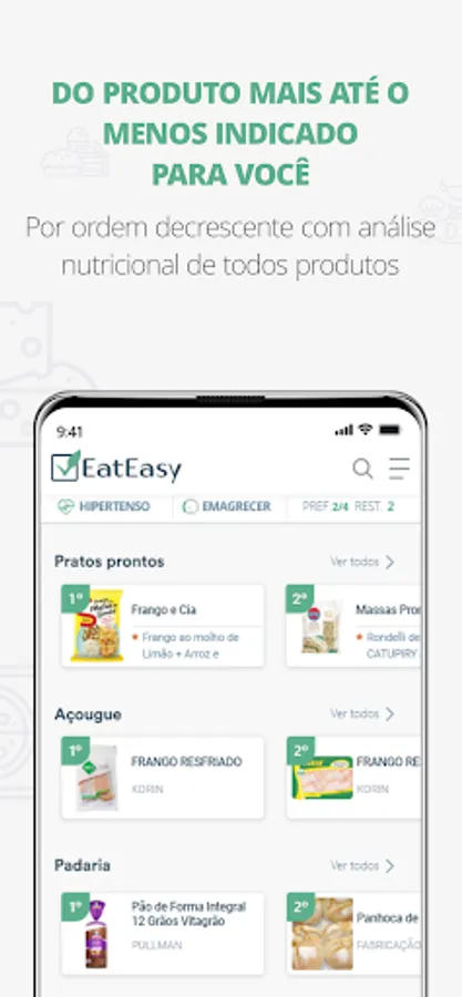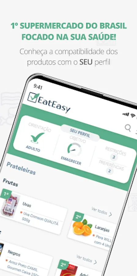 EatEasy organizes Supermarkets according to your preferences and health goals.