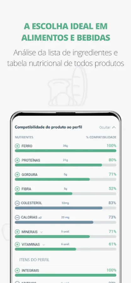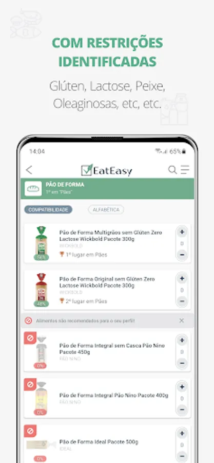 Based on your profile and the automated reading of the labels of all your supermarket products, we define the compatibility of each product with your priorities.