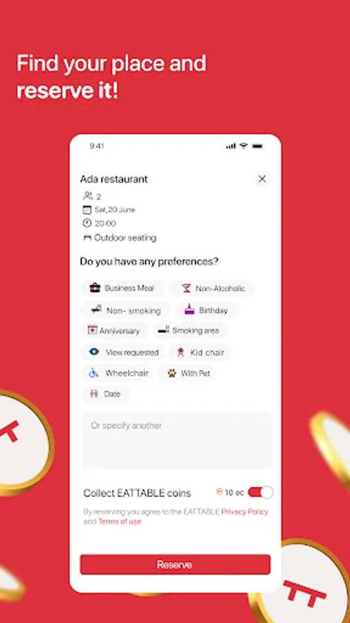By downloading the app today, you can choose the perfect place for dinner from a selection of places for birthdays, family meetings, and romantic dates. Find a restaurant nearby with an easy-to-use map with all restaurant locations and filter the results based on your taste preferences. View menus, photos, and reviews from real customers. Create your food preference lists. Streamline your booking process with features such as the number of guests, time, table location, and chat with the restaurant. Send invitations to friends and earn EATTABLE coins.