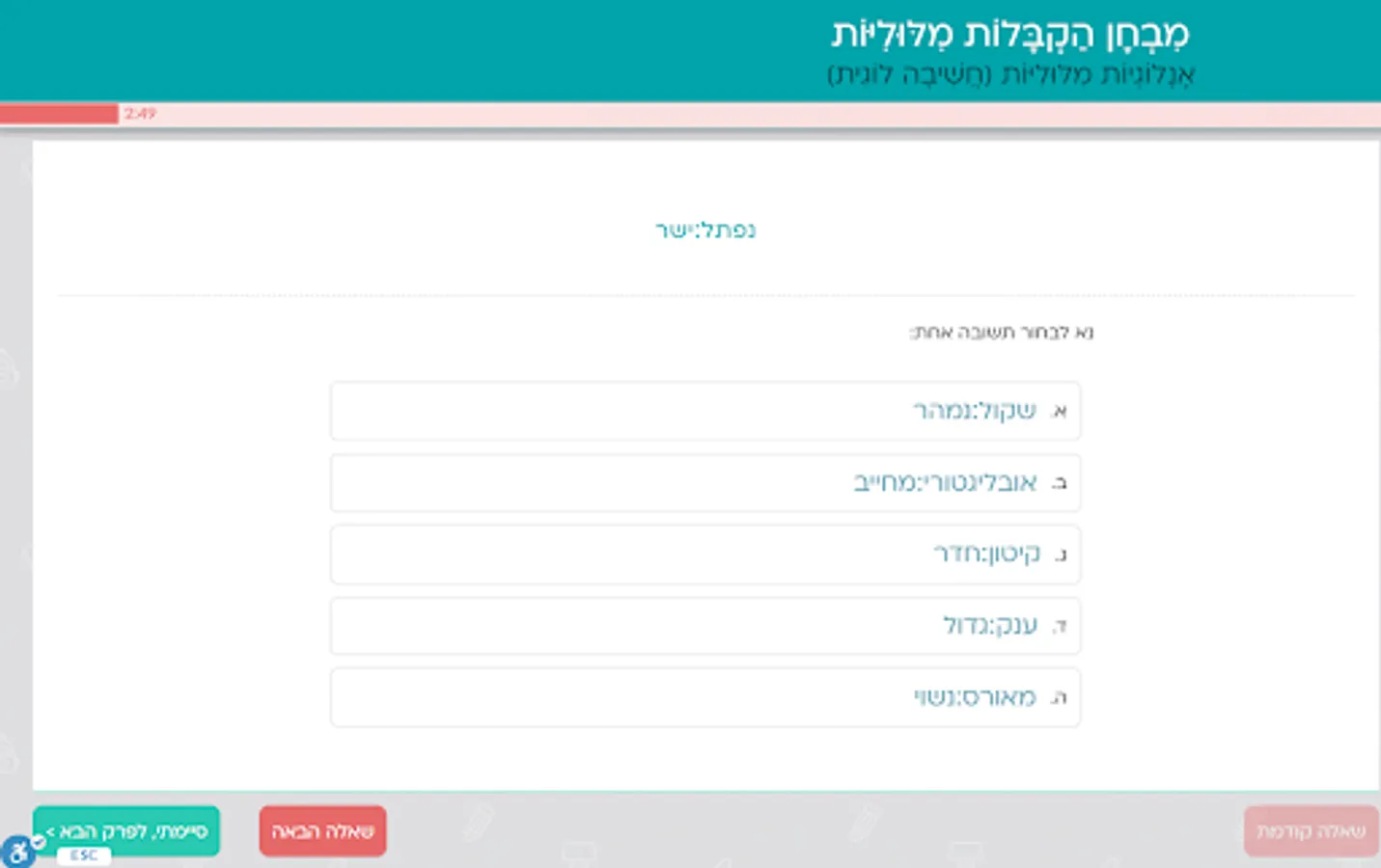 מבחנים לשיפור רמת העברית: אוצר מילים.