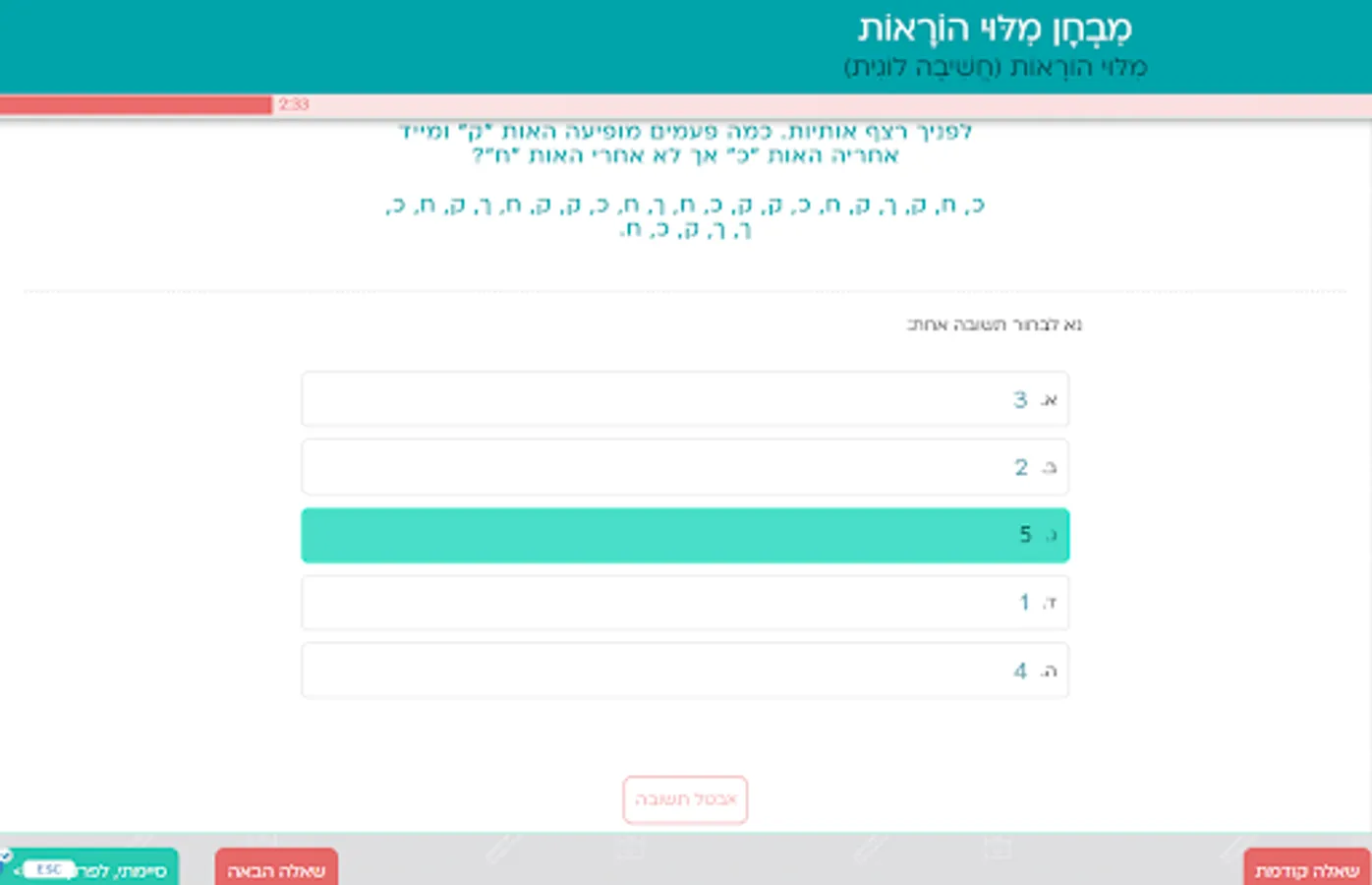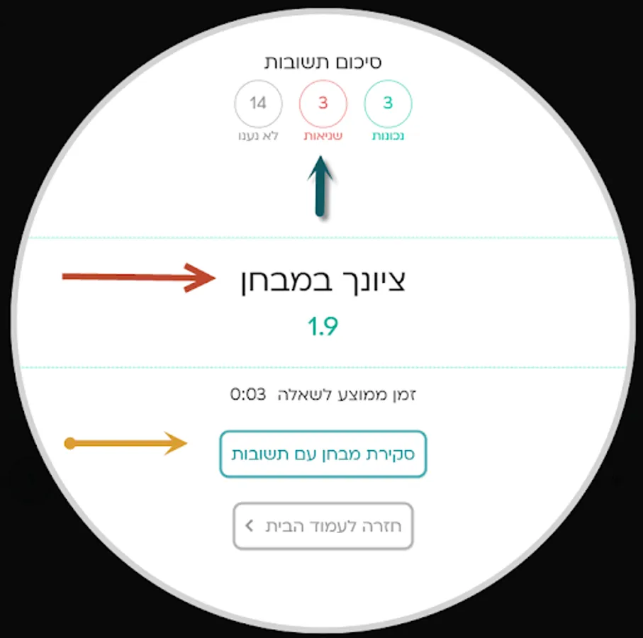 מבחנים מתוזמנים: המבחנים מתוזמנים על מנת לאמן אותך לתרגול וניהול הזמן בצורה יעילה.