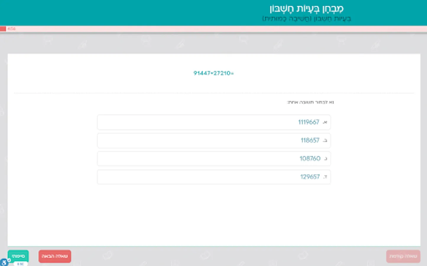 מבחנים לשיפור חשיבה כמותית: ציר המספרים; חשבון בסיס, לוח הכפל.