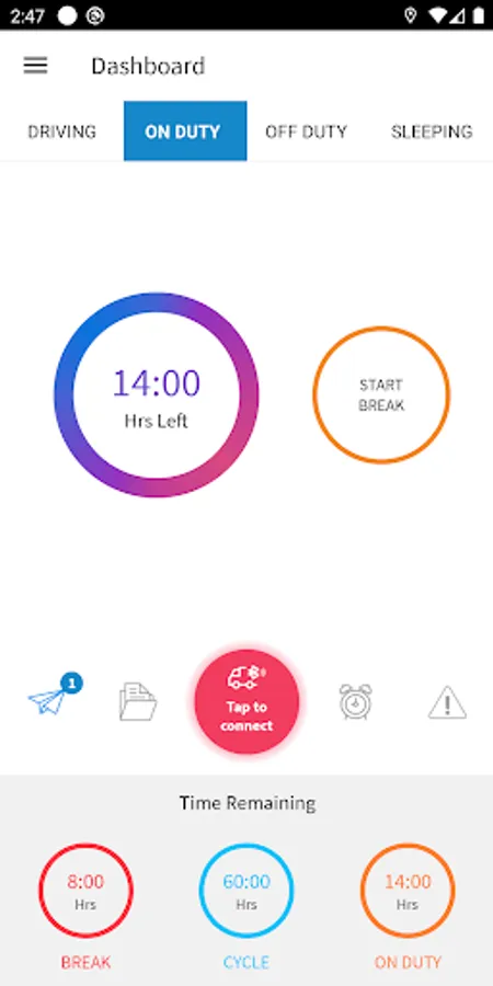 -When the vehicle is stationary for 5 minutes or more, the mobile device will default to on-duty not driving and the driver must enter the proper status"
