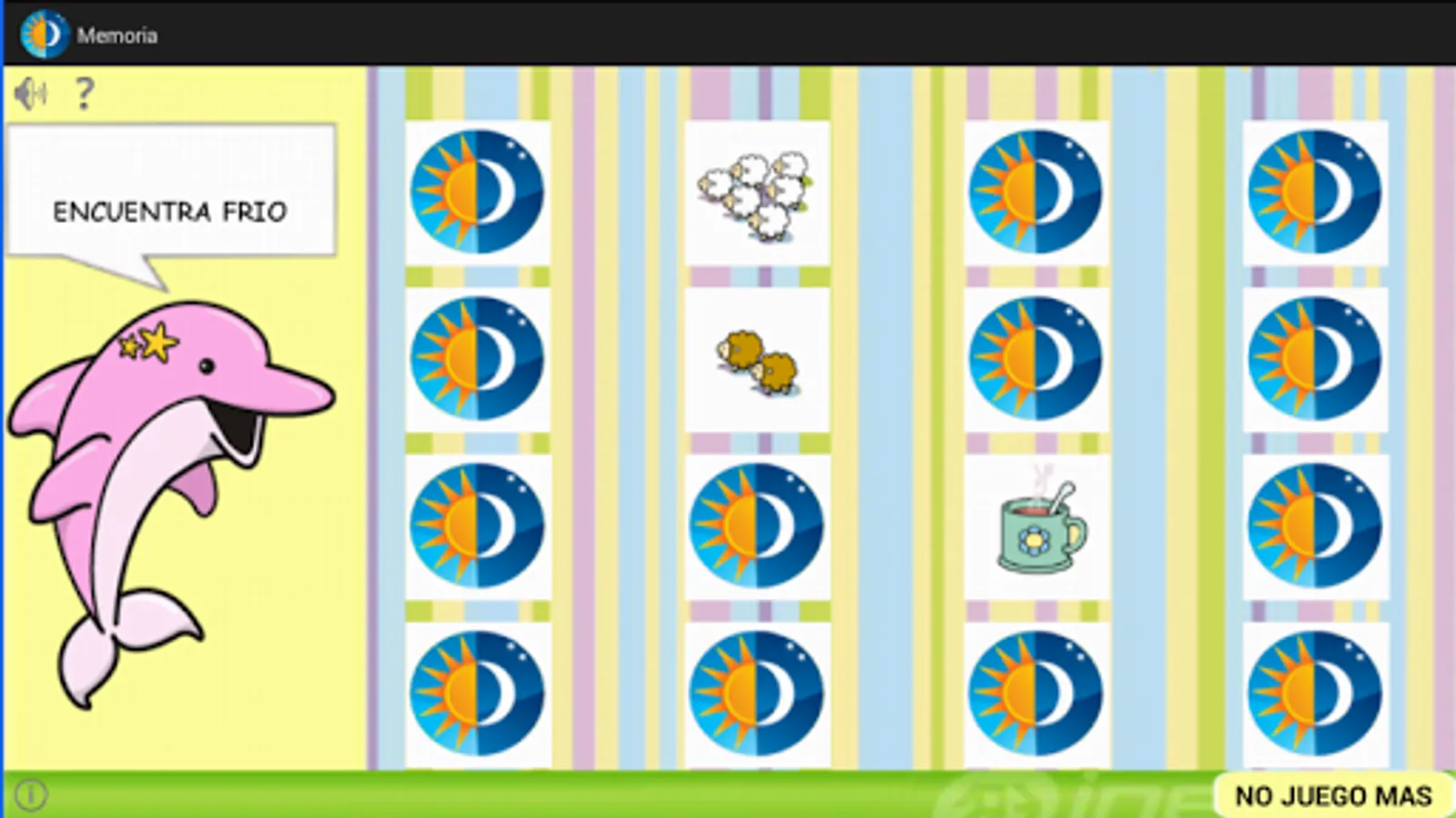 The Opposites Game stimulates cognitive function by allowing the recognition of opposite concepts such as high/low, big/small, hot/cold, many/few, among others. The game also allows developing memory, keeping the mind active, improving observation, attention and concentration, simulating the classic memory game that is traditionally played with cards where equal pairs of cards must be found, with the difference that in this case the pairs to find correspond to the aforementioned opposites.
