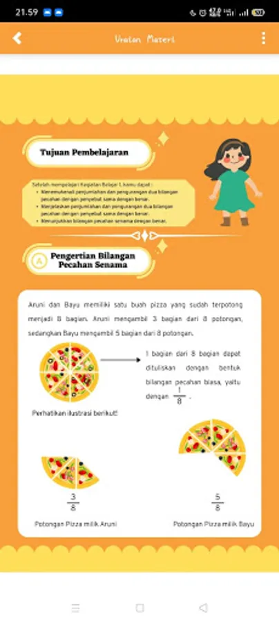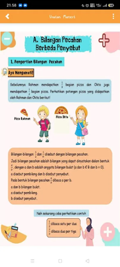 Buddy want to learn the operation of counting fractions more easily and completely? The answer is in this application to learn the operation of counting fractions. With this application learning becomes more fun. The features in this application are teaching materials and e-modules for learning Mathematics of fractions. The following materials are contained in the application: