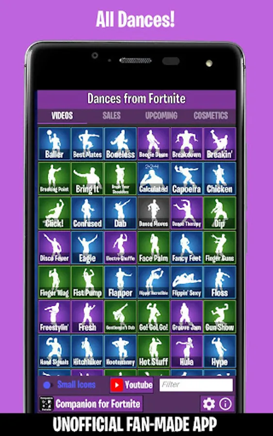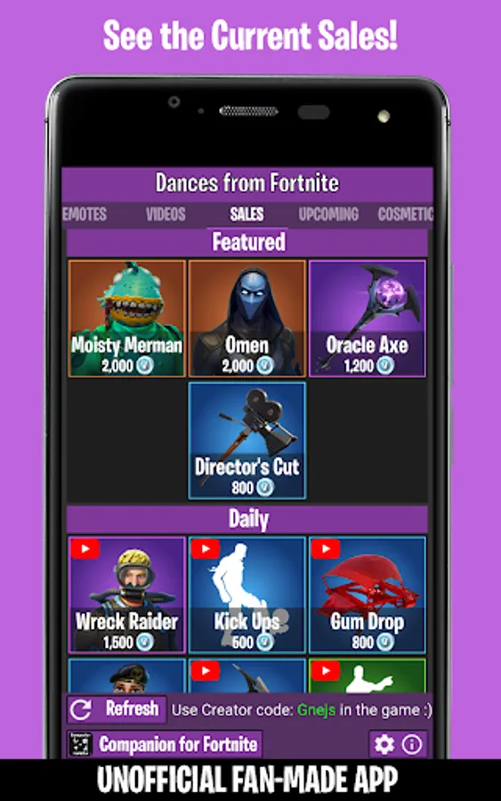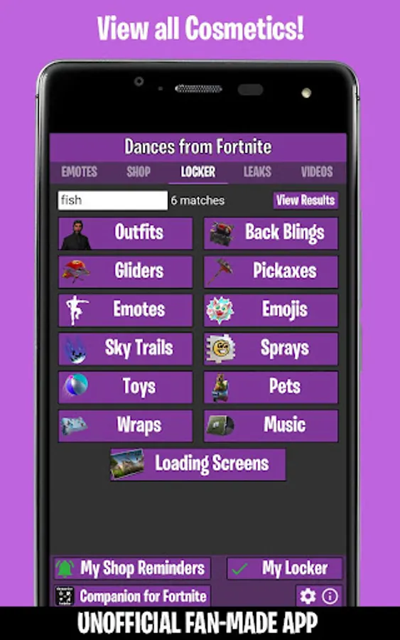 Unofficial App for Emotes, Dances, Skins, Daily Shop and other Cosmetics from the game!