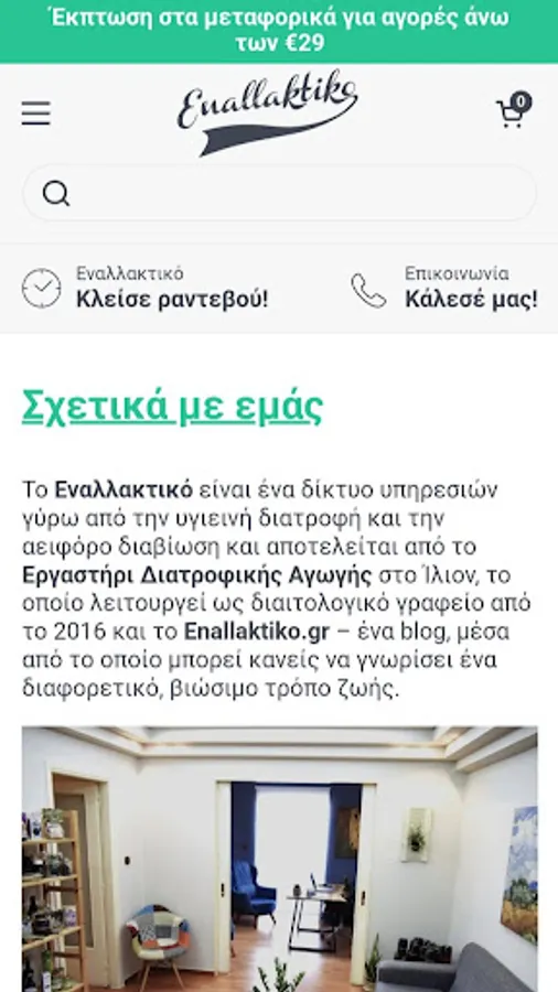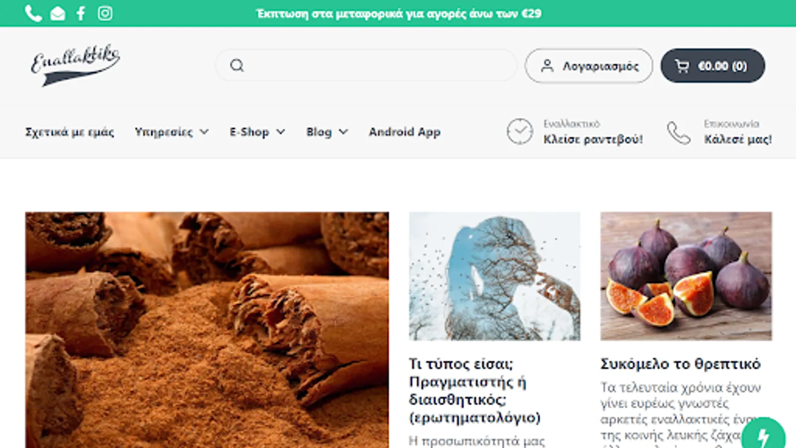 The Alternative is a network of services around healthy eating and sustainable living and consists of the Nutrition Education Laboratory and Enallaktiko.gr - the first e-commerce blog in Greece