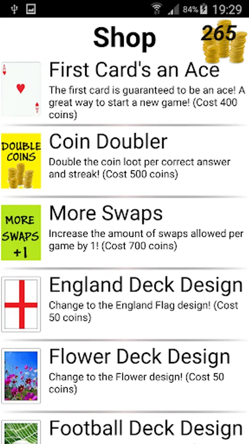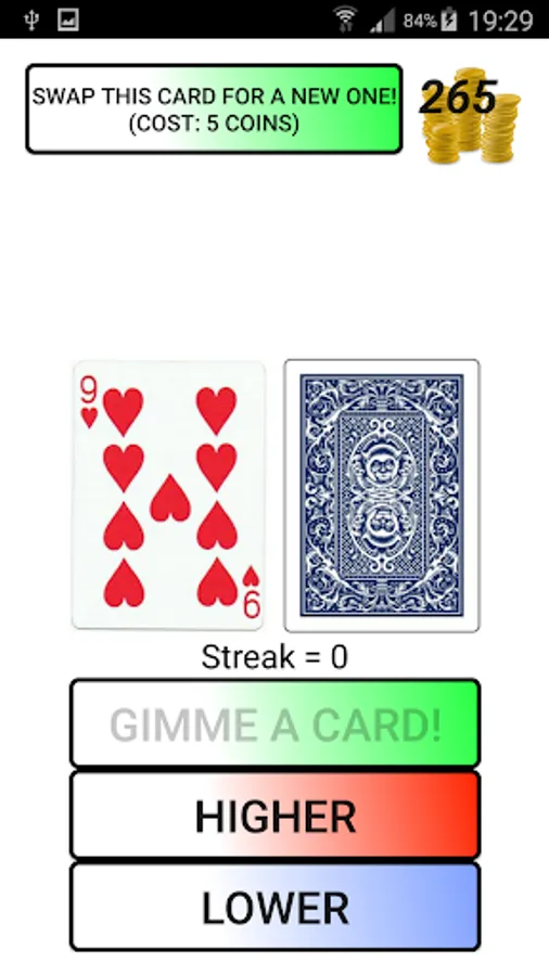 A spin on the popular game show "Play Your Cards Right" where users choose whether or not the next card will be higher or lower than their current card.