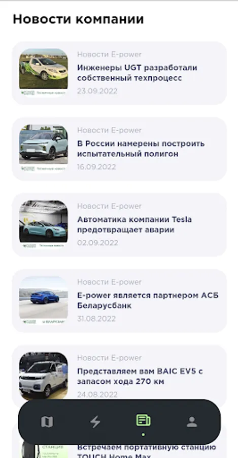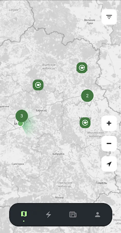 The application allows you to easily track and build logistics for refueling your electric car throughout the territory of the Republic of Belarus and the CIS countries.