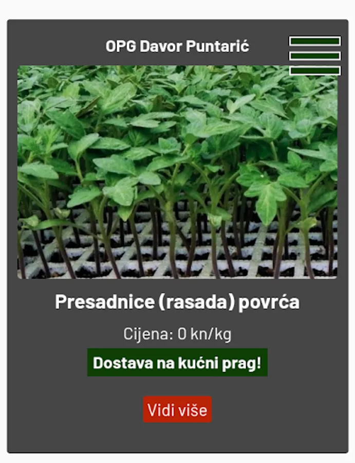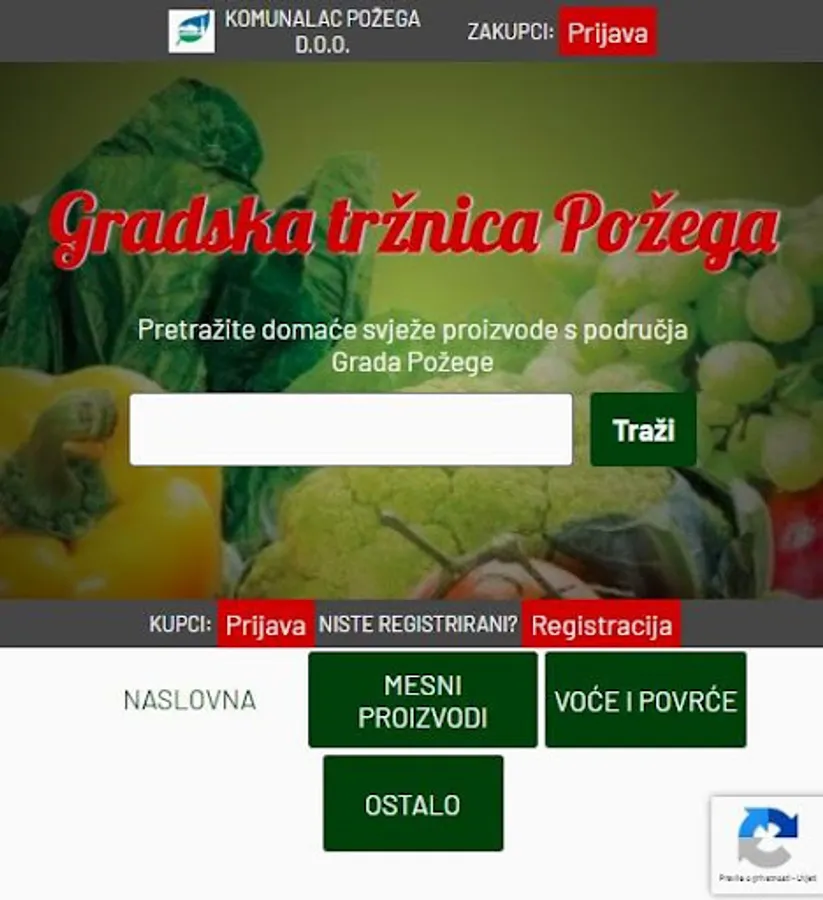 Application through which Komunalac Požega d.o.o. offers its tenants to sell their products to local buyers.