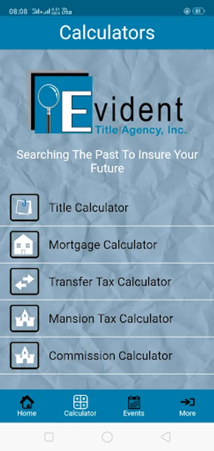 Evident title agency is proud to provide this comprehensive app for Realtors, brokers, and lenders. Our app allows you to calculate title insurance costs, mortgage payments and transfer tax amounts.