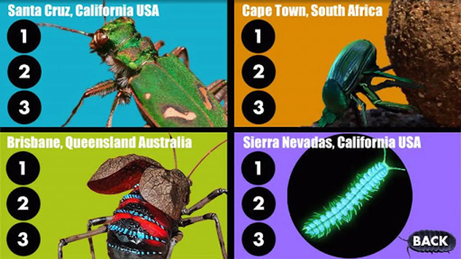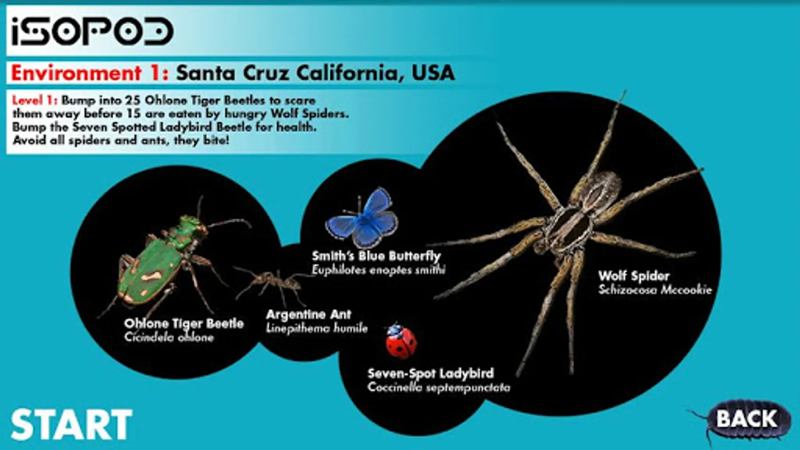 This truly unique app is best described as an integrated synthesis between arcade-quality gameplay and scientific encyclopedia, with the intention of inspiring a fascination with insects and their relationship to a variety of life science subjects.