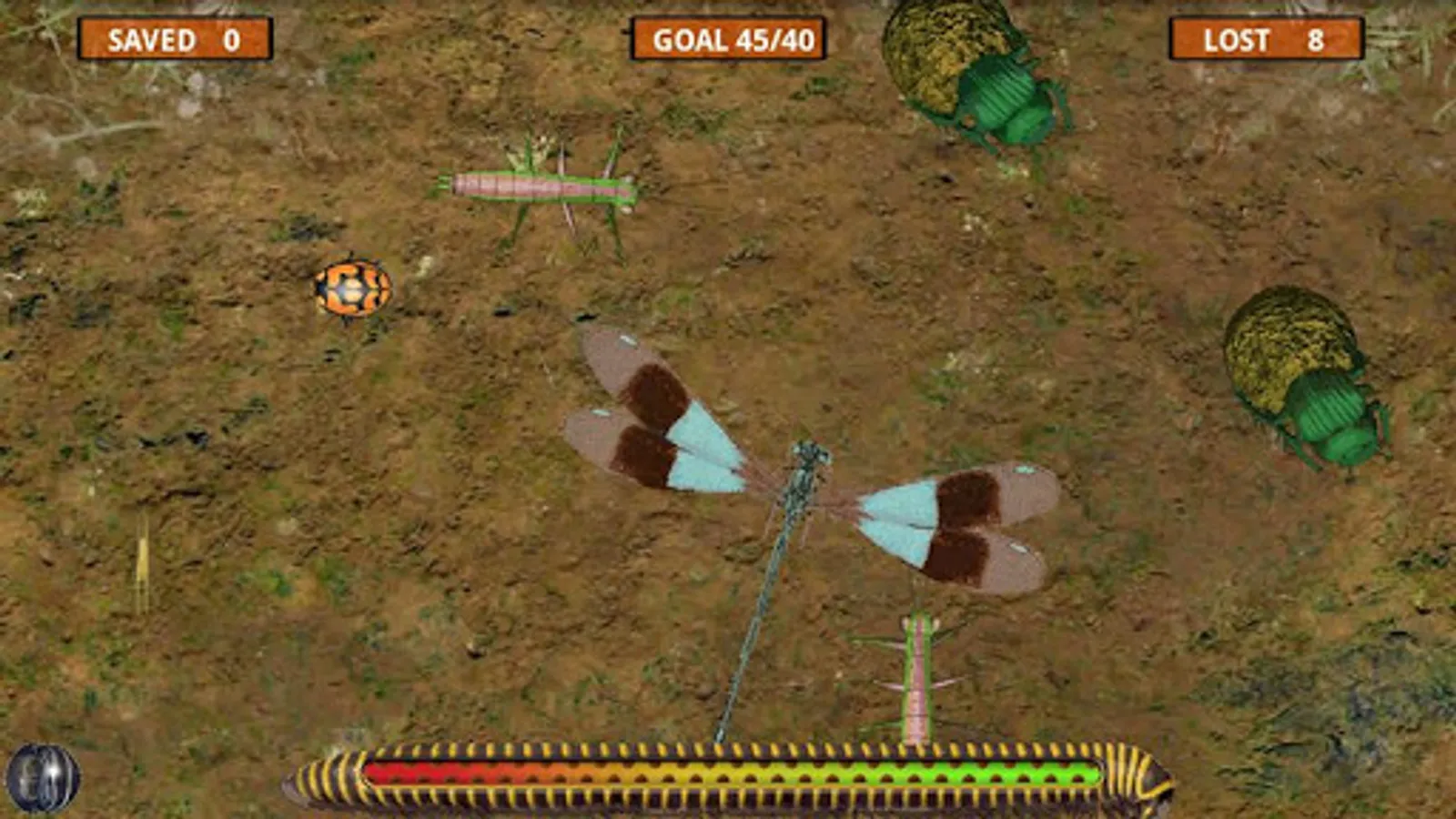Env1: Beetles will come to you if you can stay in one general area. Bumping the blue butterfly means you can go anywhere quickly without a problem but make sure you are not behind an ant line when the power runs out.