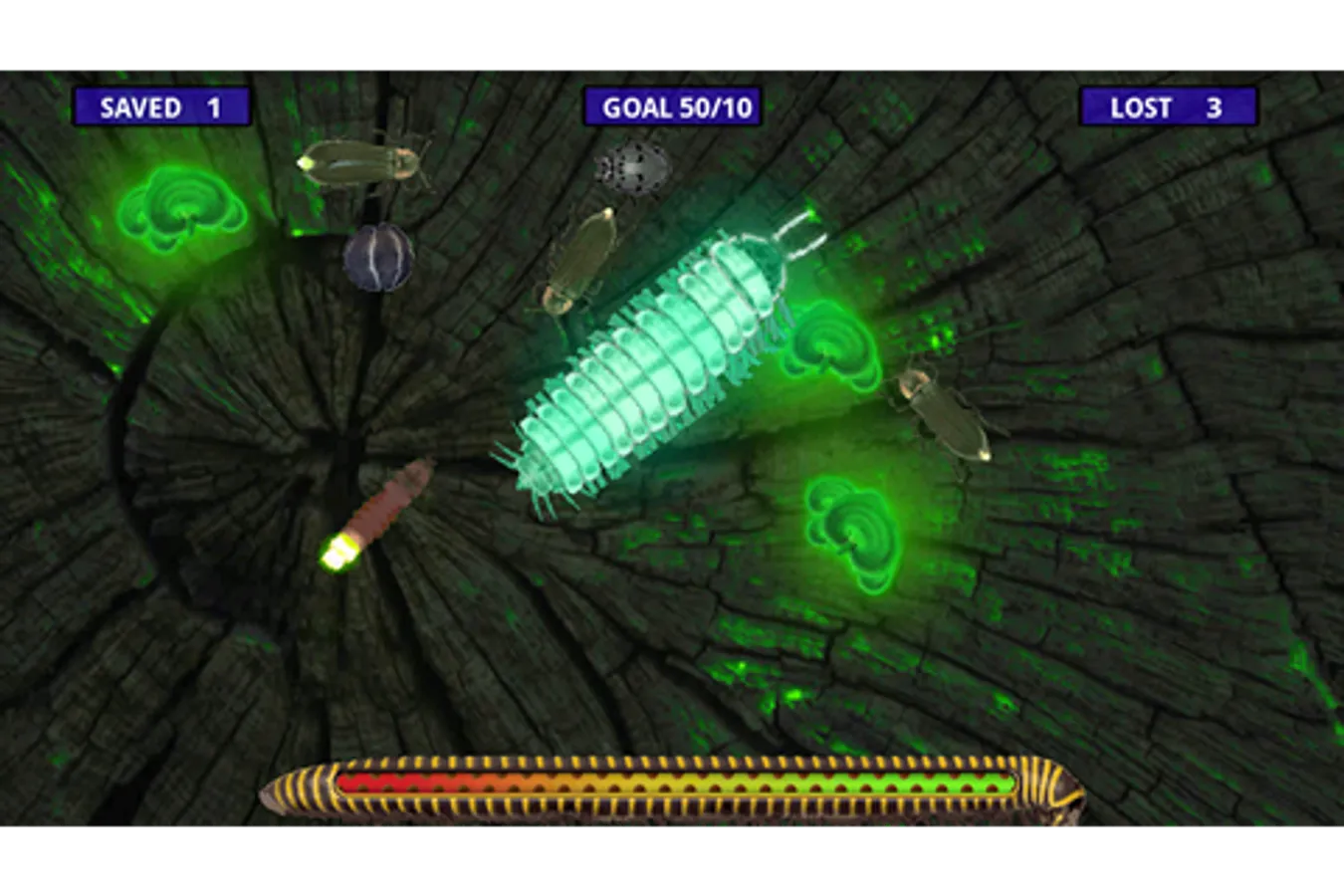 Env 4: When the millipede stops, get far away...the cyanide gas has an extended reach. Also, wait until a group of 8-10 fireflies appears all at once before bumping the female glowworm power up, that way you can free a bunch at once.