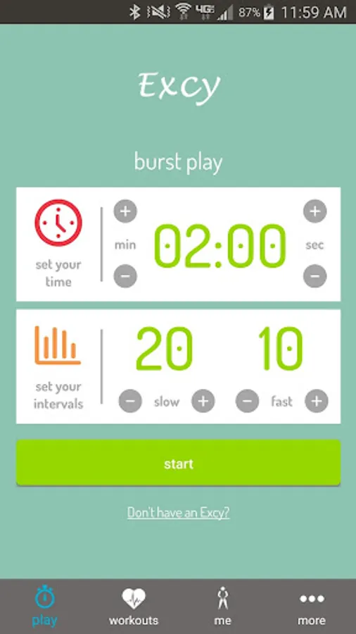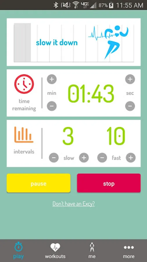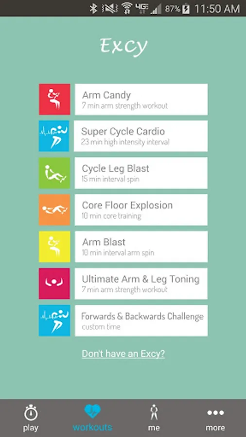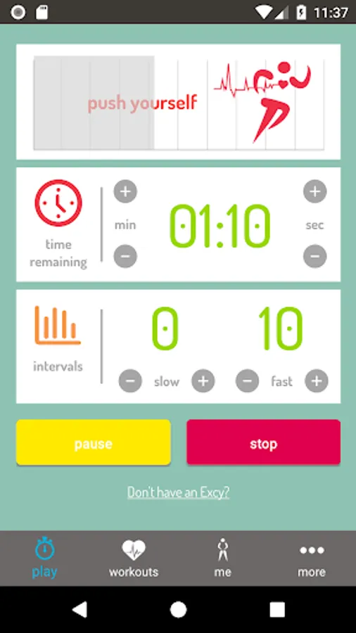 We designed this app to work with the Excy portable cross training system, but you can use it for any interval training! Whether cranking out an Excy upper or lower body cardio or strength training workout, running, or using your home exercise spin bike or treadmill, the Excy mobile coach will be available at the exact time and place you need it!