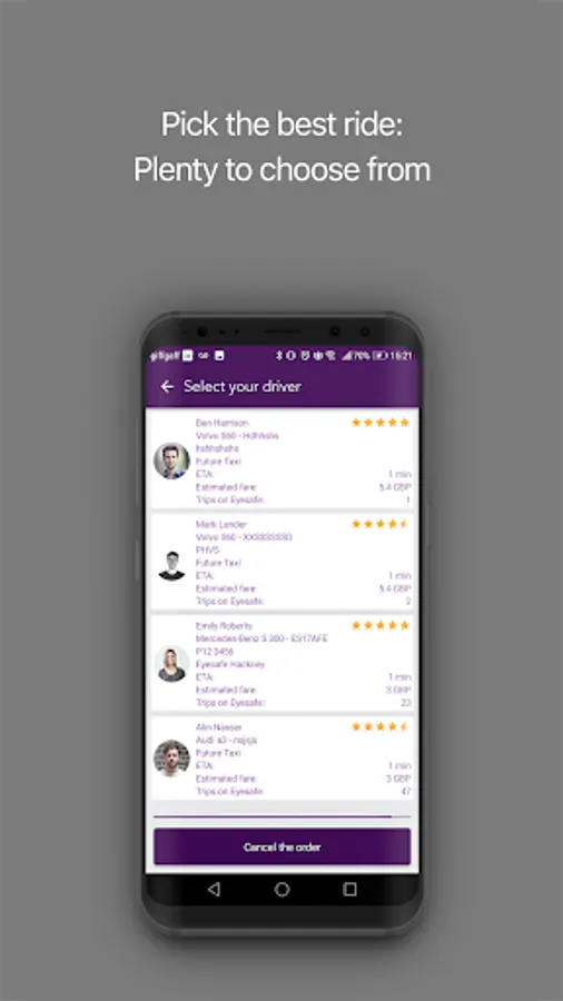 Smart Choices of different services by type, fare, distance and driver through multiple real time quotes,