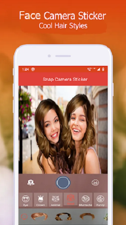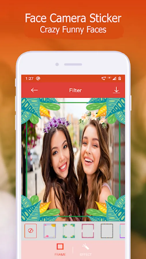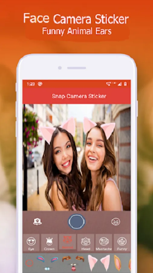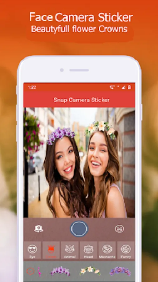 Face Camera Sticker is the best choice for you if you are looking for an outstanding selfie with stickers! In the app there are all kinds of face filter like cat ears face, dog ears face filter, heads, flowers crowns and so on. You can also make crown picks and funny faces using