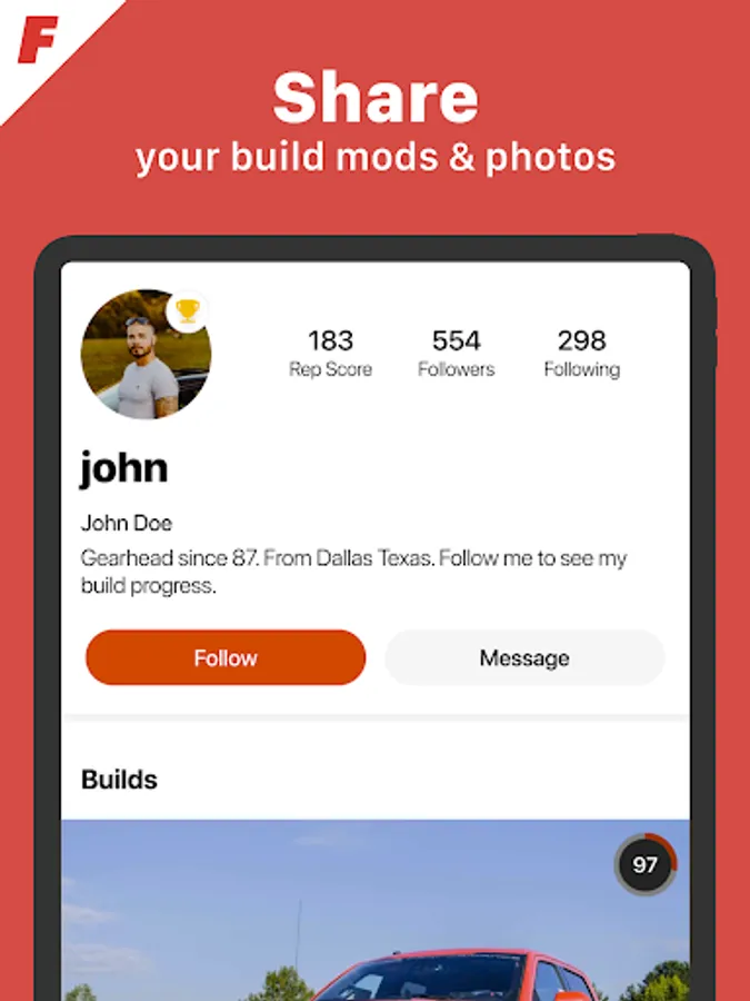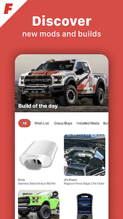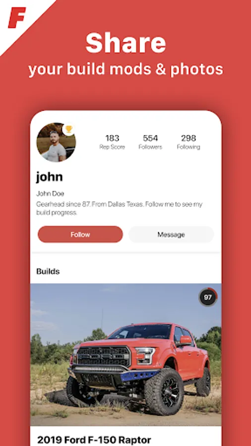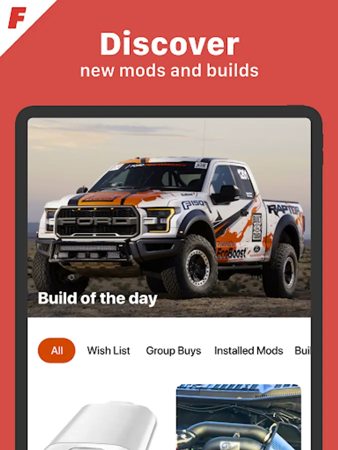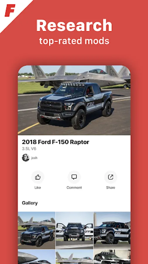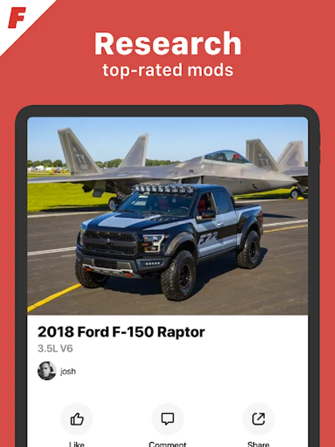 *Create a profile for your Raptor, sharing your installed mods, next mods, photos and videos to tell your build story