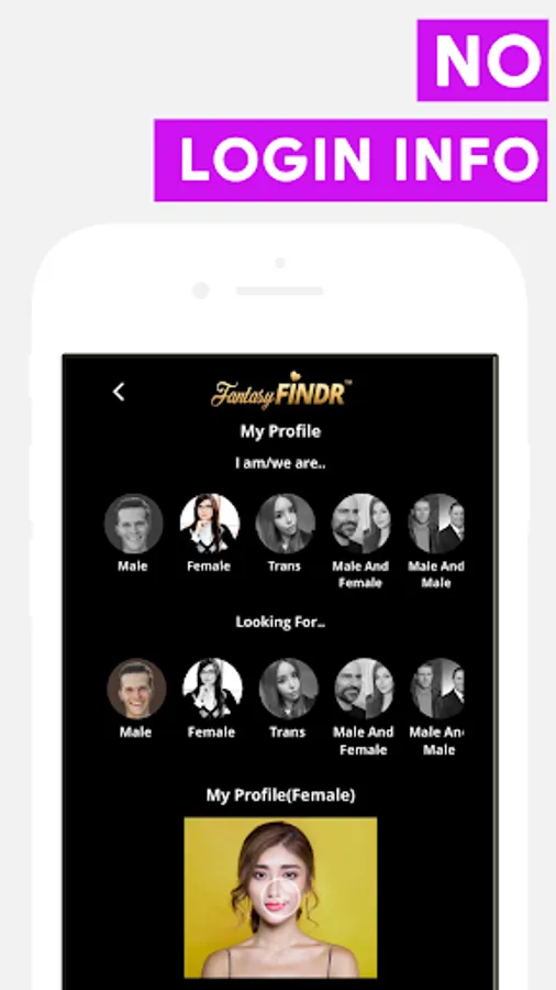 Whether you identify as female, male, transgender, a couple, straight, gay, lesbian, or bicurious we have the perfect app for you! Fantasy FINDR friends may be a few miles away or anywhere in the world. At Fantasy FINDR, we pride ourselves as the only social networking app with NO subscriptions and NO login information. Take a look at some great features below and start meeting people today!