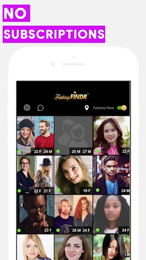 Most social networking apps upload fake users and bots to make the app look more popular than it is. Integrity is at the core of our business model. We promise our customers, Fantasy FINDR will NEVER upload fake users to appear to have more users than we have. We also have a zero tolerance policy for BOTS.
