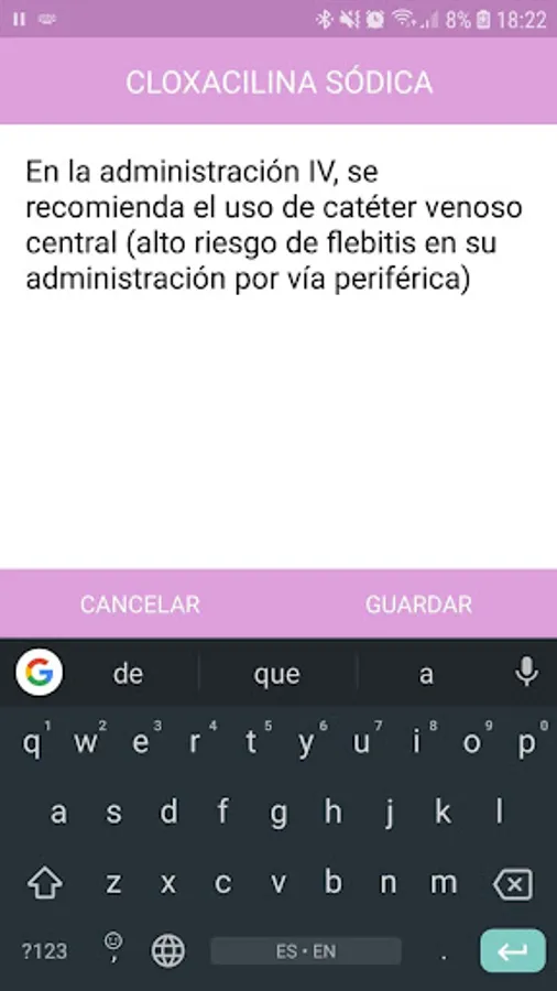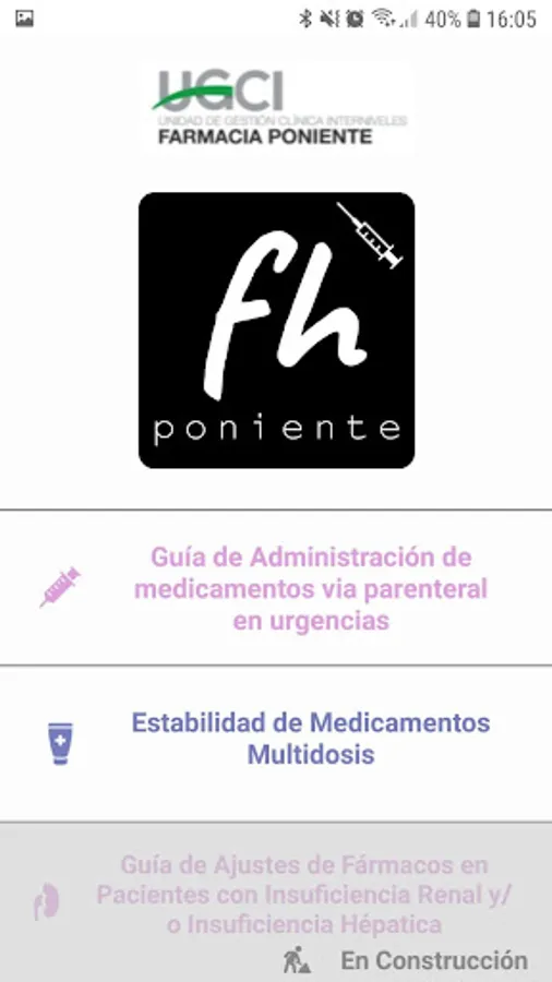 The first resource that has been designed and included in the APP is the guide of ADMINISTRATION of medicines via PARENTERAL in the emergency department (at the Hospital de Poniente).