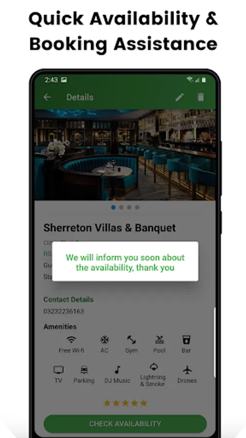 • Real-Time updated wedding halls, banquets, hotels, villas, and farmhouses availability correct data are present.