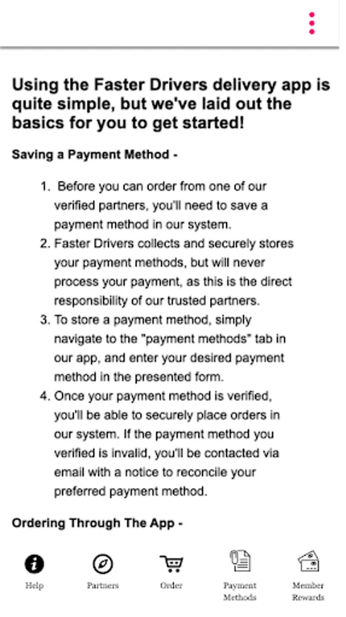 The Faster Drivers app allows you to order food delivery through one of our verified partners. Tip your driver, track your orders, and review your order directly within the app.