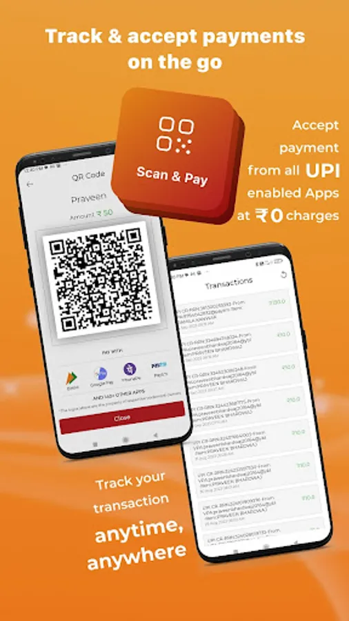 • Merchants can accept payments via QR codes with sound box notifications on the app.