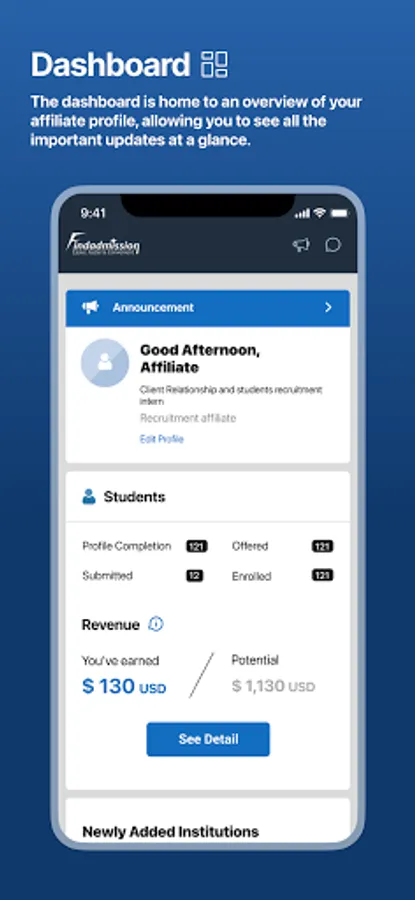 Findadmission affiliate program is for those that have a contact with a young audience, including prospective students that might be interested in studying abroad. The affiliate program allows you to pair those interested with a Findadmission institution partner, helping them to achieve their dreams, while you earn revenue for doing so.