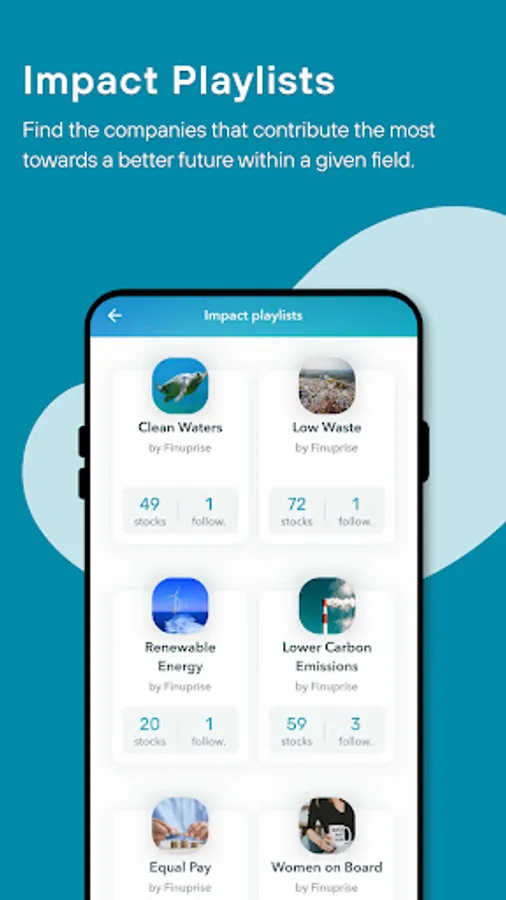 Do you care about an impact area that you can’t find in the app yet? Don’t worry, we have many more impact playlists to come. We are going to release new playlists on a rolling basis, along with new playlists our stock universe is going to expand as well. Currently, in the app, you can find more than 2000 stocks of global companies but we will make sure to expand the stock universe app so you can always find new interesting IPOs and trending companies.