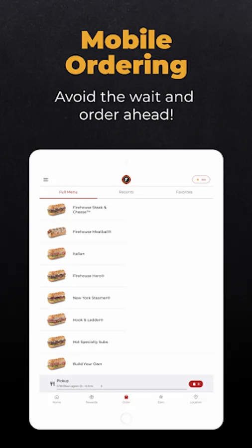 • Mobile Ordering: For select locations, order with the app and skip the line to enjoy your meal even faster.