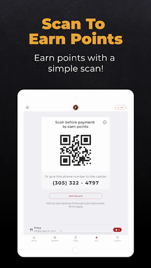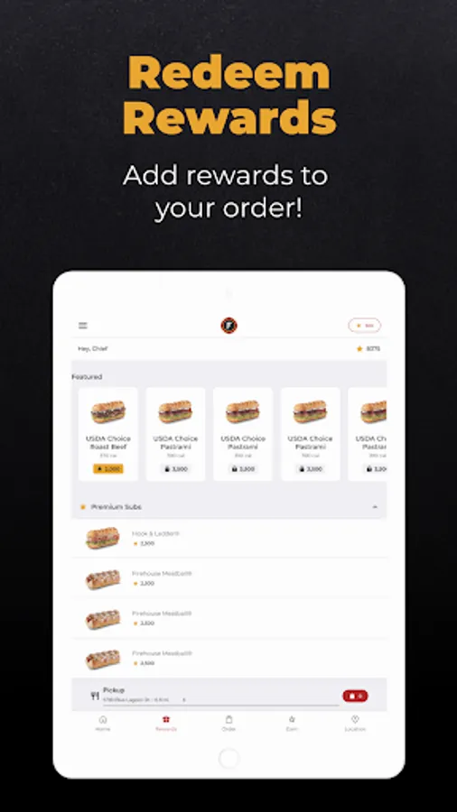 • Loyalty program: Earn 1 point for every $0.01 you spend at Firehouse Subs, and save up your points to redeem free food rewards for subs, upgrades, and more!