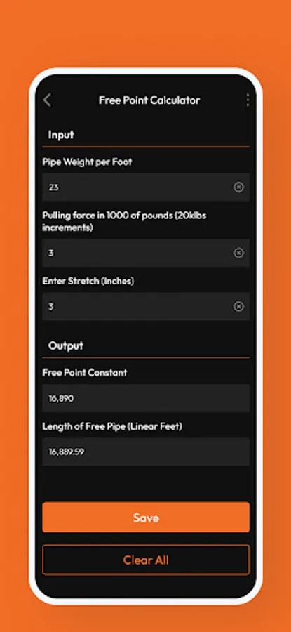 Simply input Pipe Weight, Pulling Force, and Stretch to get an instantaneous result for Free Point Constant and Length of Free Pipe (linear feet).